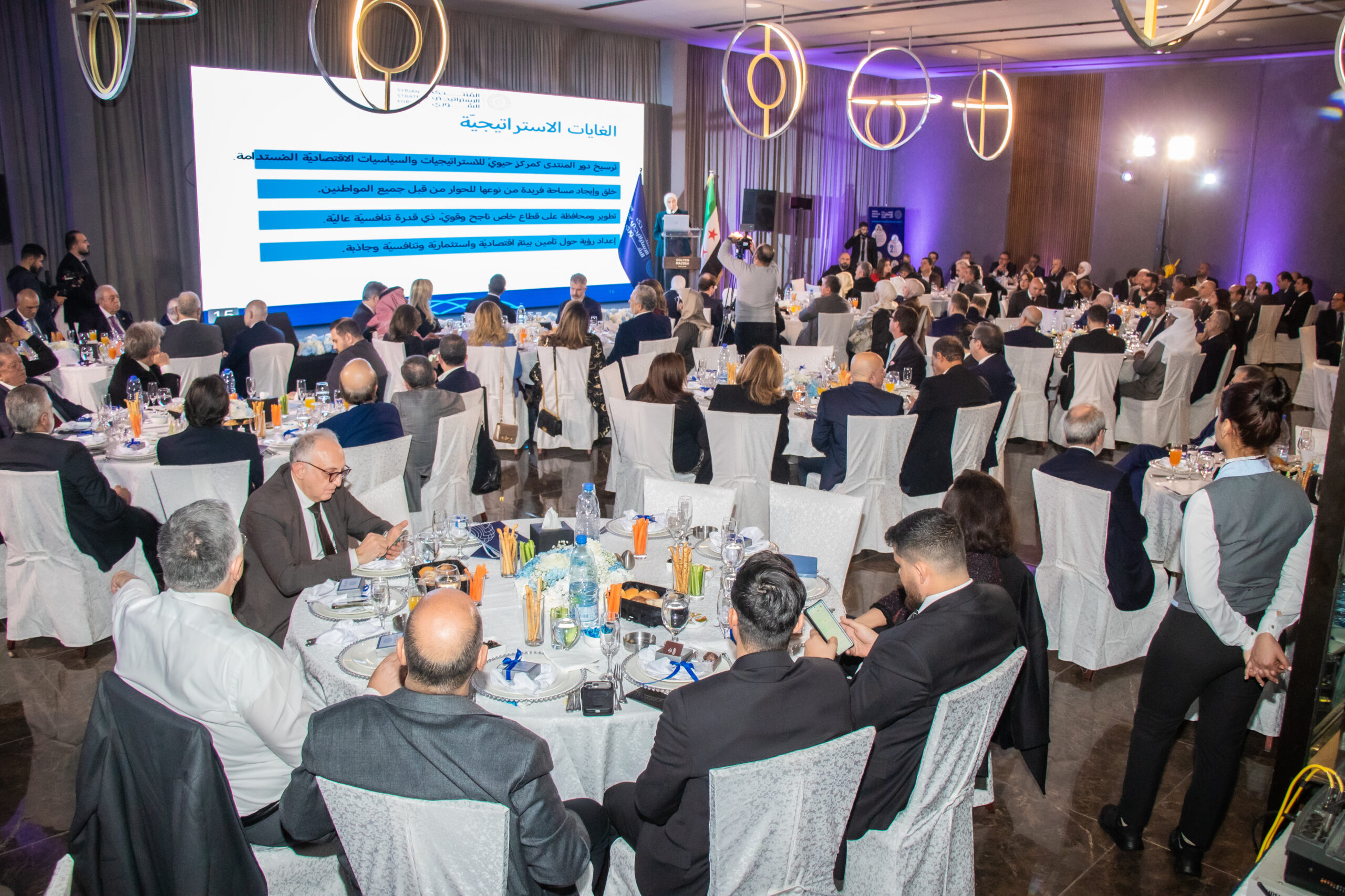 شهد المنتدى الاستراتيجي السوري يوم 08/02/2026 تنظيم حفل عشاء الإطلاق الرسمي في دمشق، بحضور نخبة من أعضاء المنتدى وشركائه الاستراتيجيين، إلى جانب عدد من الشخصيات الرسمية والدبلوماسية والخبراء وممثلي القطاعات التنموية والإنتاجية والإعلام.
